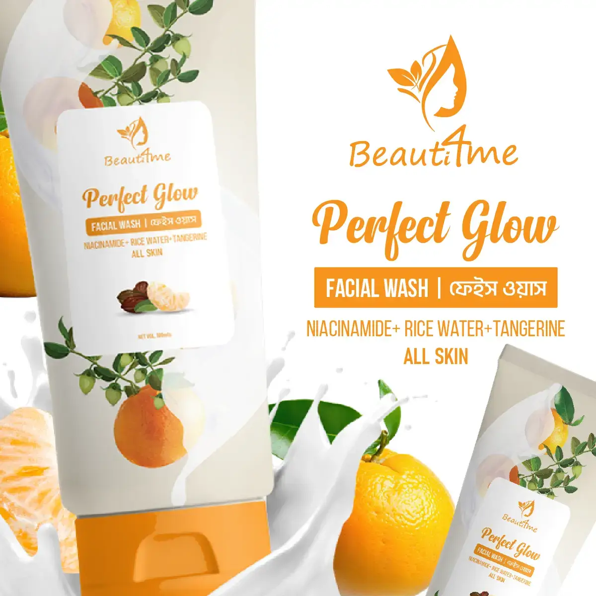 Beauti4me Perfect Glow Facial Wash, a combination of Rice water, Tangerine extract, and Niacinamide a powerful formula for achieving brighter, more radiant skin. Rice water gently exfoliates, revealing fresh, rejuvenated skin.
